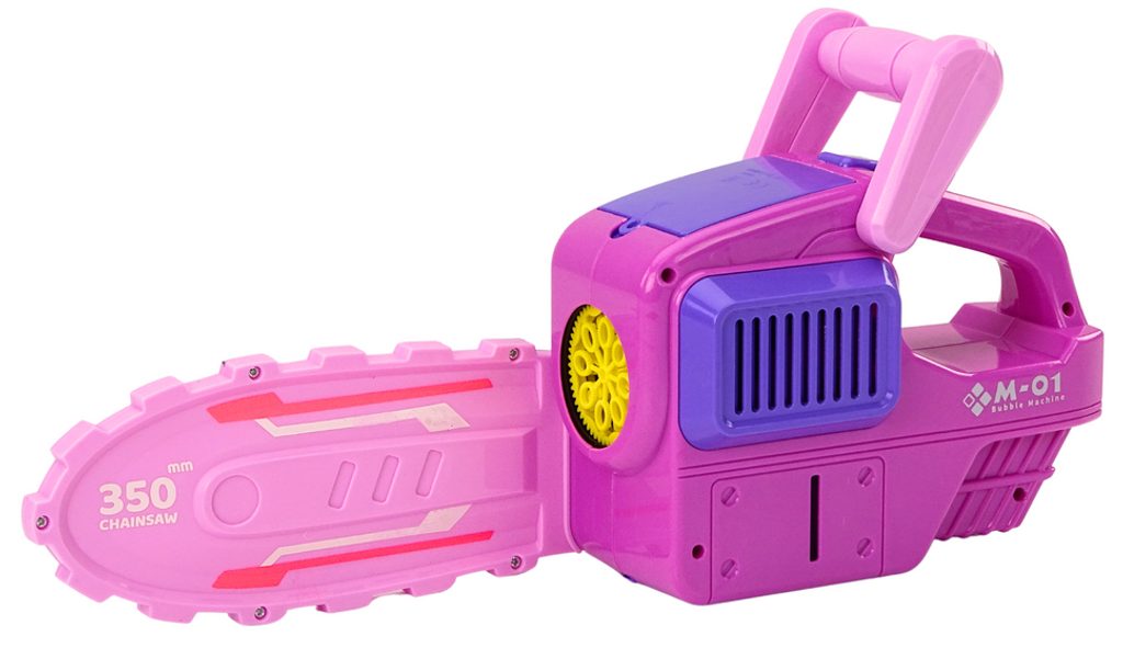 Detský bublifuk Motorová píla dokáže vytvoriť nekonečné množstvo bublín. Po naliatí mydlového roztoku do nádržky pod generátorom bublín a zapnutí začne píla vyrábať bubliny. Hra vonku sa tak stane veľmi zaujímavou. Hračka je vyrobená z plastu a je určená pre deti od 36 mesiacov veku.