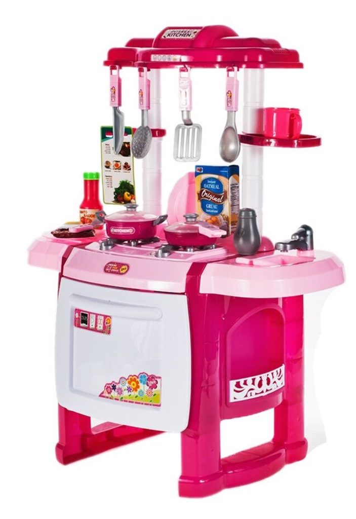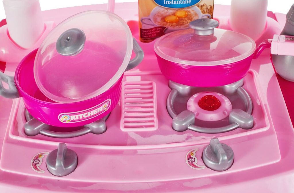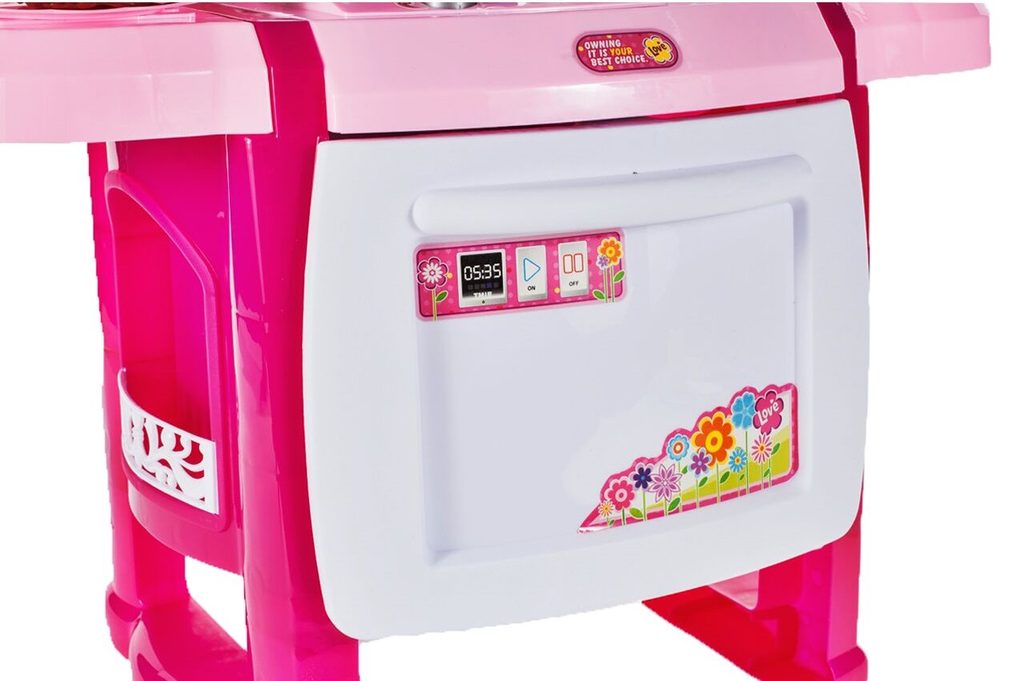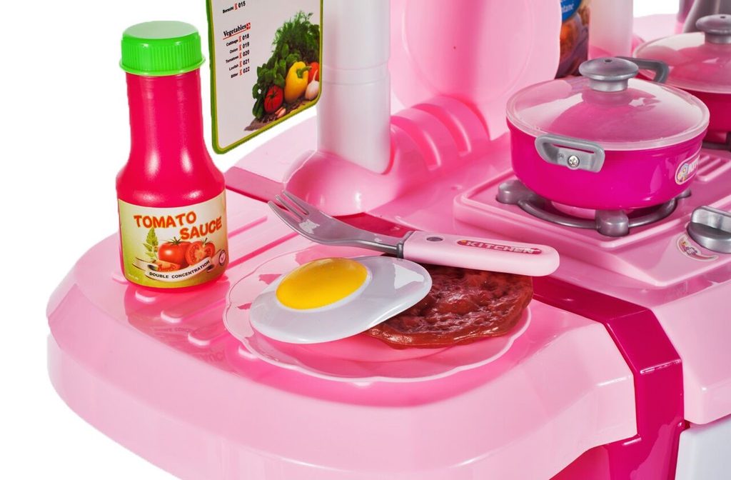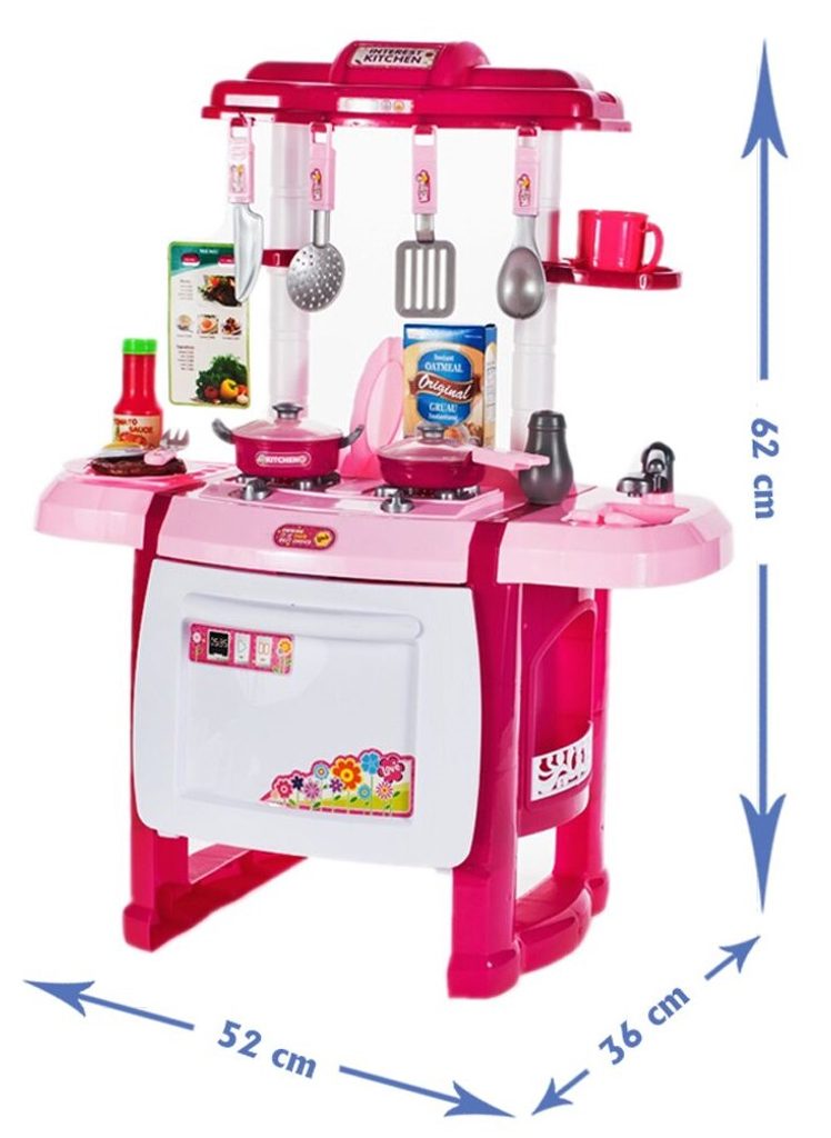 Interaktívna detská kuchynka so zvukovými a svetelnými efektmi je určená pre deti od 3 rokov. Je vybavená príslušenstvom ako sú príbory, taniere, hrnce, imitácia potravín a mnoho ďalších. Vaše dieťa sa určite s touto veľkou kuchynkou nudiť nebude. Rúra kuchynky je otváracia. Po otočení vypínačov sa rozsvietia horáky a spustí zvuk napodobňujúci vyprážanie a bublanie. Je vyrobená z plastu v pestrofarebnom prevedení.