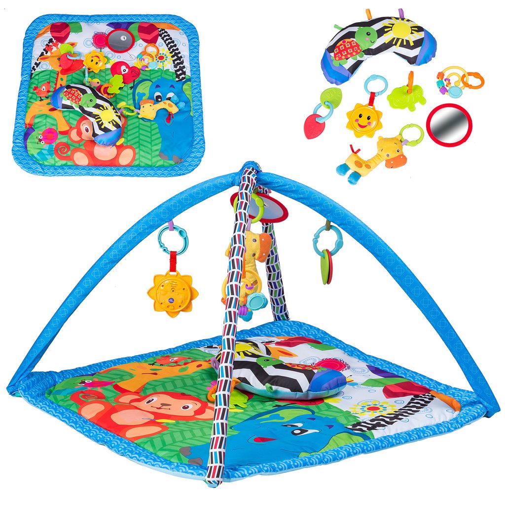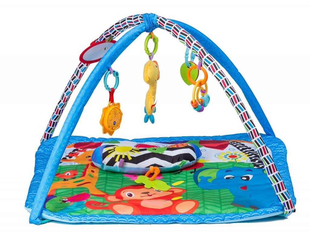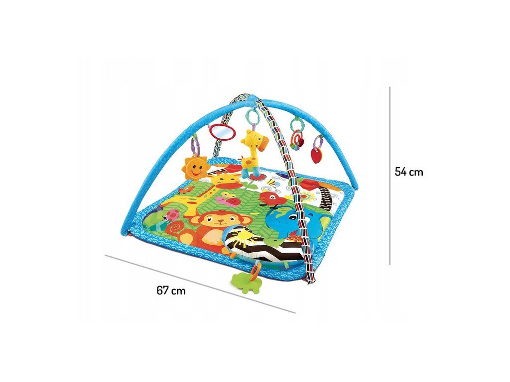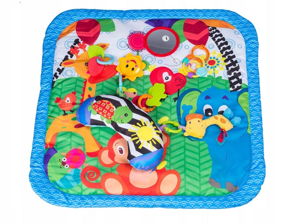 Ecotoys farebná hracia deka je určená Vášmu dieťaťu už od narodenia. Súčasťou deky sú dve hrazdičky so zavesenými hračkami a bezpečným zrkadielkom pre sebapozorovanie. Hračky možné odňať a dieťa sa s nimi môže hrať samostatne. Jedna z nich v tvare slniečka vydáva 12 rôznych melódií. Súčasťou deky je mäkký vankúšik. Deka je vyrobená zo stálofarebného materiálu.