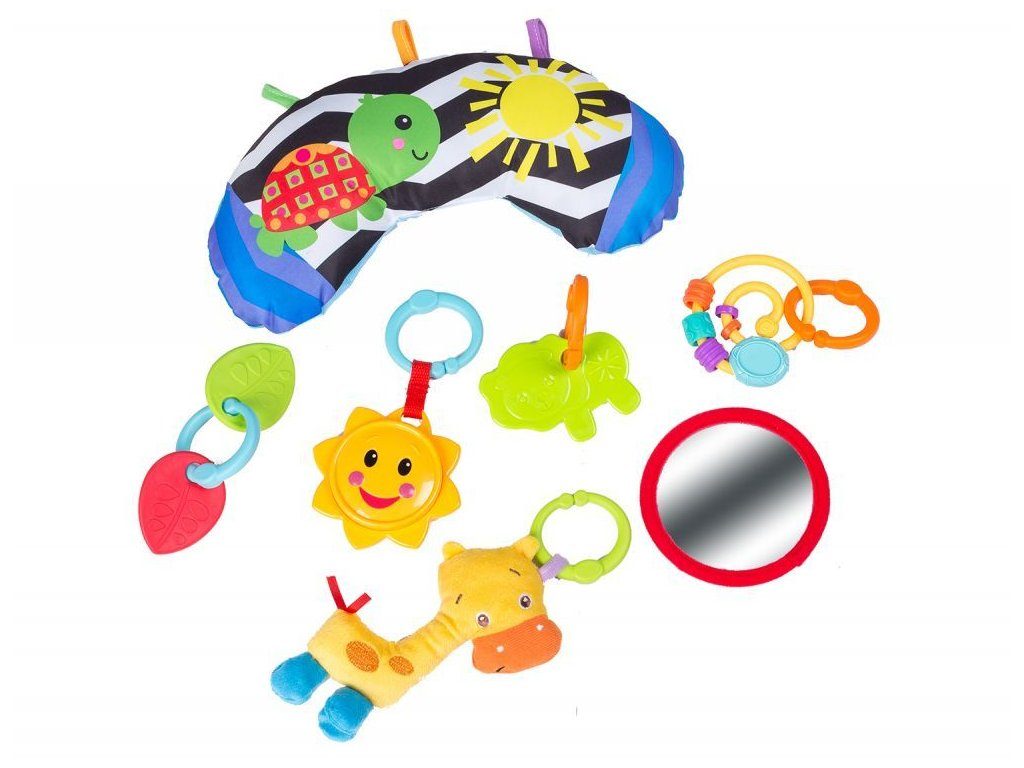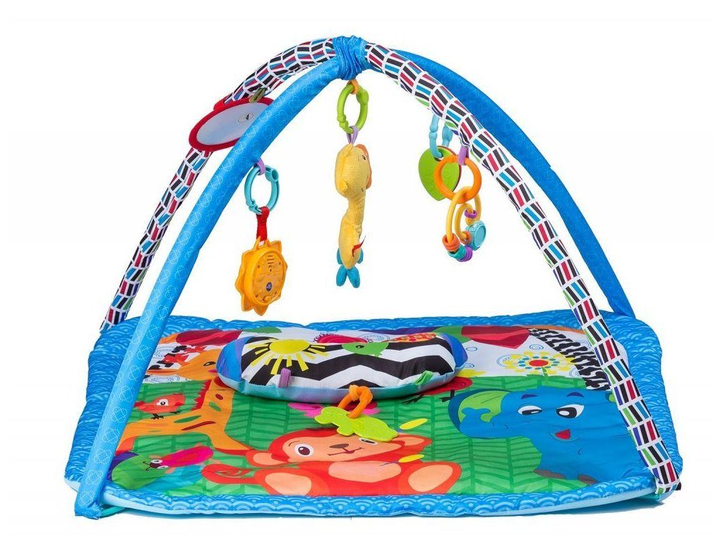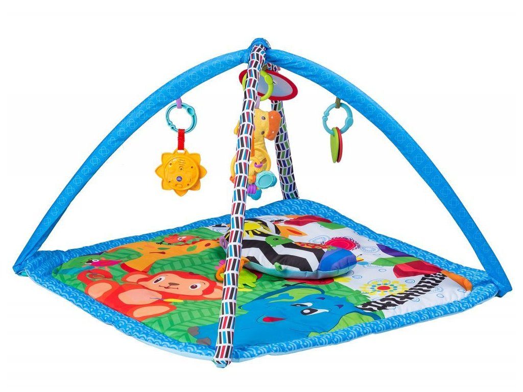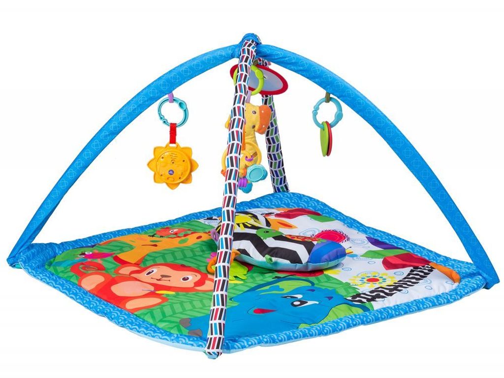 Ecotoys farebná hracia deka je určená Vášmu dieťaťu už od narodenia. Súčasťou deky sú dve hrazdičky so zavesenými hračkami a bezpečným zrkadielkom pre sebapozorovanie. Hračky možné odňať a dieťa sa s nimi môže hrať samostatne. Jedna z nich v tvare slniečka vydáva 12 rôznych melódií. Súčasťou deky je mäkký vankúšik. Deka je vyrobená zo stálofarebného materiálu.