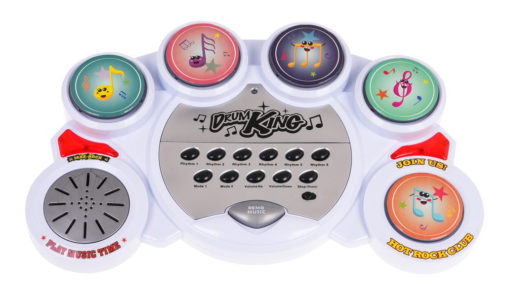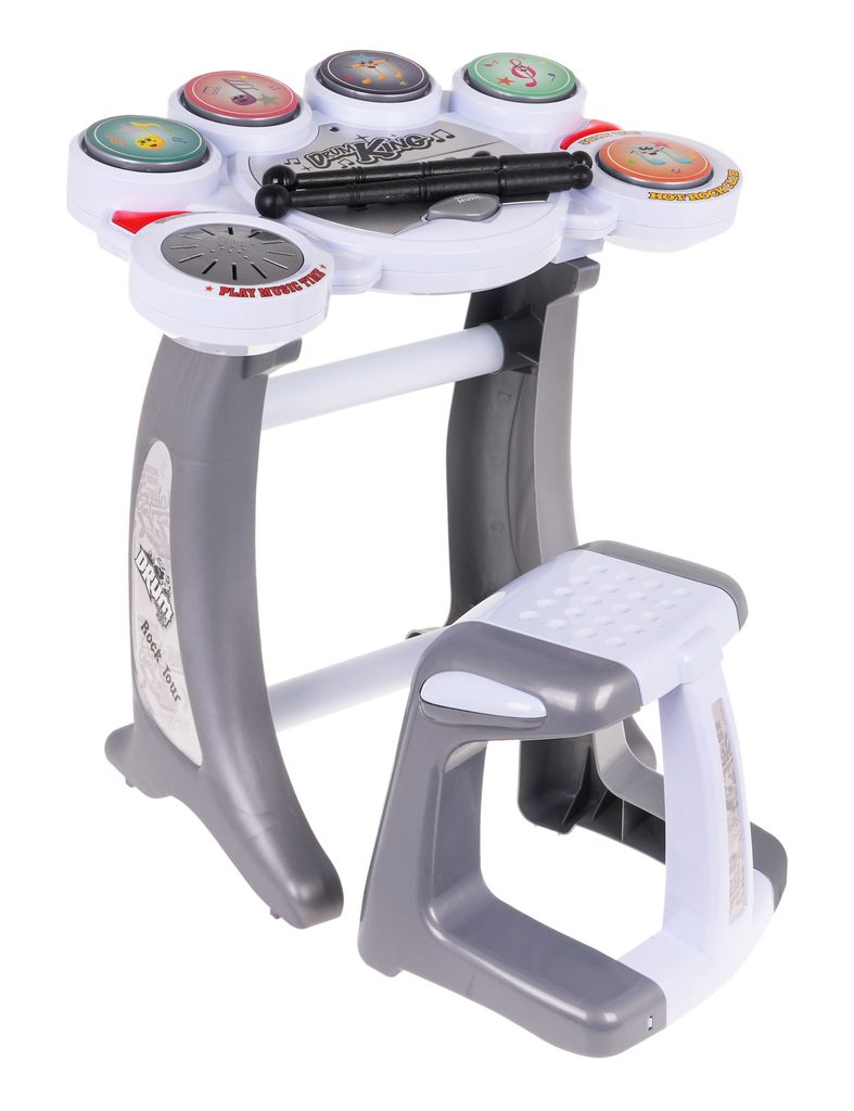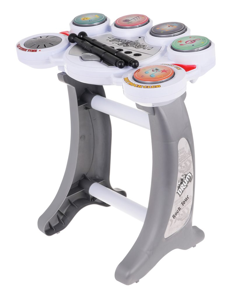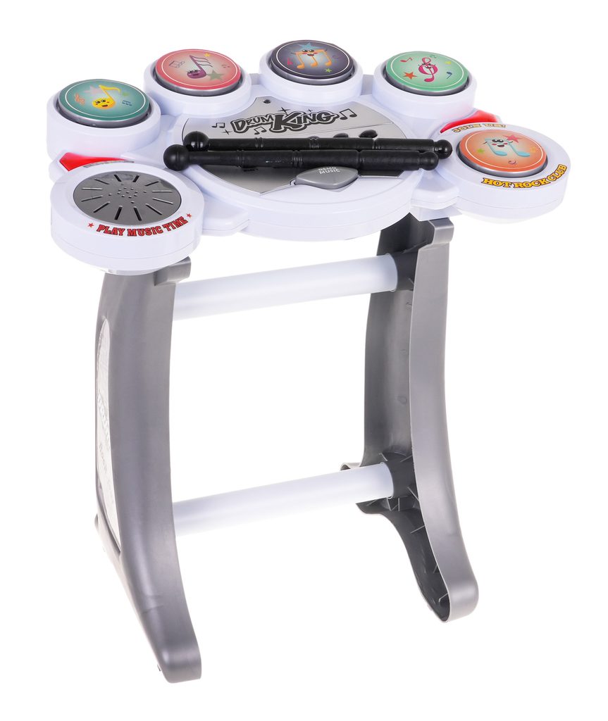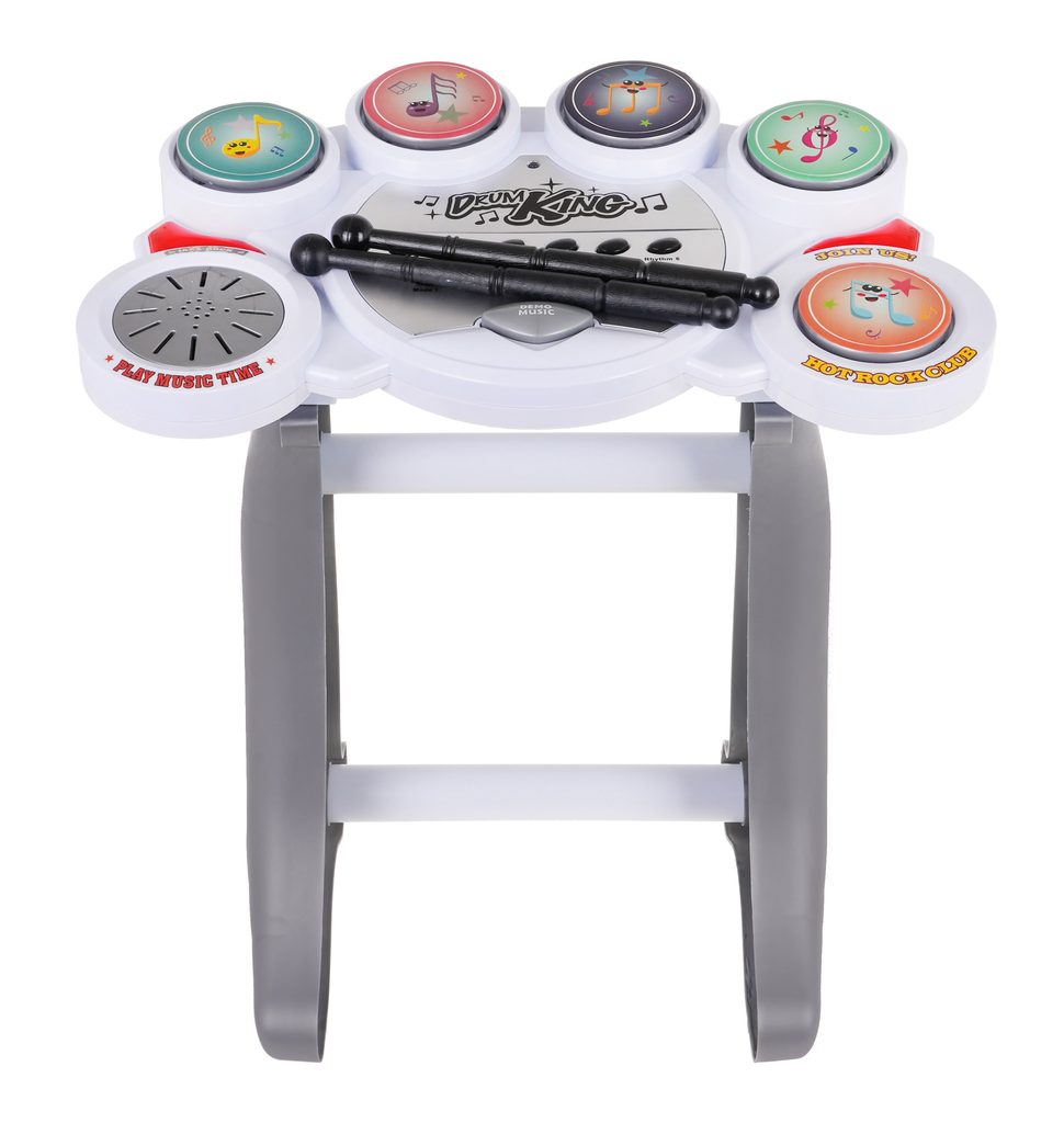 Zostava elektronických bicích nástrojov Drum Set je ideálnou hračkou pre tie najmenšie deti. Umožní dieťaťu rozvíjať zmysel pre rytmus a koordináciu. Hračka vydáva úderom paličiek reálne zvuky bicích nástojov v rôznych rytmoch. Vo výbave sú aj demo režimy a regulácia hlasitosti. Súčasťou balenia je praktická stolička. Hračka je určená pre deti od 36 mesiacov veku.