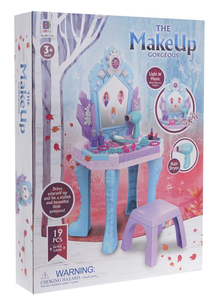 Toaletný stolček Little Princess musí byť súčasťou izbičky každej malej princeznej. Je vybavený množstvom dôležitých vecí pre každú malú parádnicu. Set obsahuje imitácie kozmetiky, hrebeň, náušnice a ďalšie príslušenstvo. V stolíku je tiež praktická priehradka na drobnosti. Pre ešte väčšiu zábavu má stolček svetelné efekty, ktoré sa po stlačení tlačidla zobrazujú na zrkadle princeznej. Fén na batérie fúka vzduch ako by bol skutočný. Hračka je určená pre deti od 36 mesiacov veku.