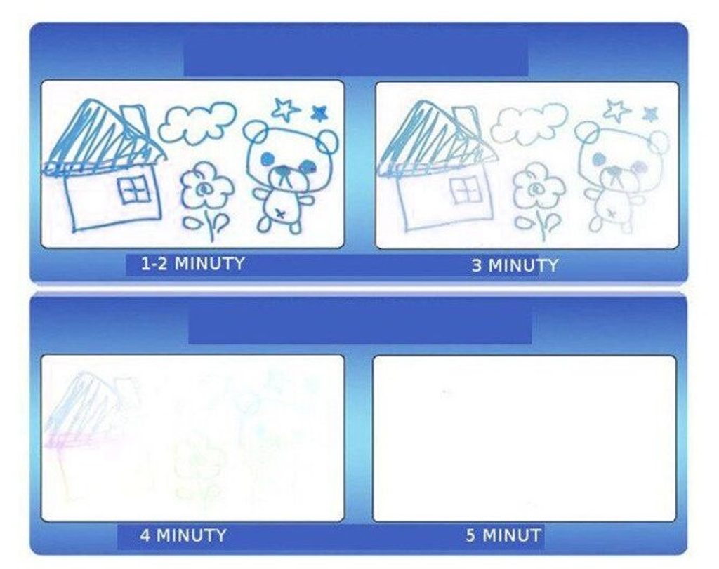 Detská vodná deka na kreslenie je ideálnou hračkou pre rozvoj detskej kreativity a tvorivosti. Priložené fixky „Magic Peny“ stačí naplniť vodou a hra môže začať. Po určitej dobe všetko čo dieťa nakreslí zmizne. Zábava je tak nekonečná. Hračka je určená pre deti od 36 mesiacov .