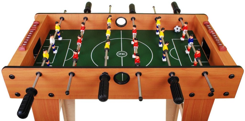 Detský futbal Soccer modrý umožní zábavu 2 až 6 deťom. Je vyrobený z kvalitnej MDF dosky v pestrofarebnom prevedení. Celkom obsahuje 18 figúrok hráčov, ktorí sú rozdelení do 2 tímov a sú umiestnení na vodiacich tyčiach, ktorých konce majú protišmykovú úpravu. Každá bránka má svoje vlastné počítadlo a súčasťou hry sú aj 2 loptičky. Otvory pre vhadzovanie loptičiek sú umiestnené na oboch stranách stola. Hracia plocha má vyznačené čiary a pokutové polia. Je vyrobená z materiálu, ktorý je odolný proti poškriabaniu. Výška stola je 66 cm.