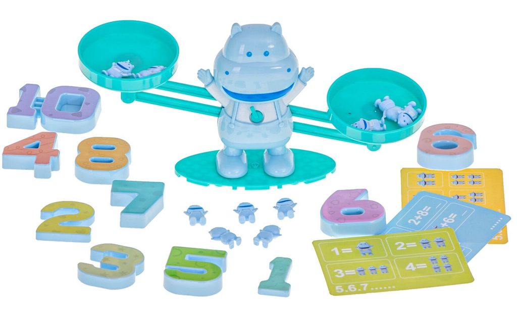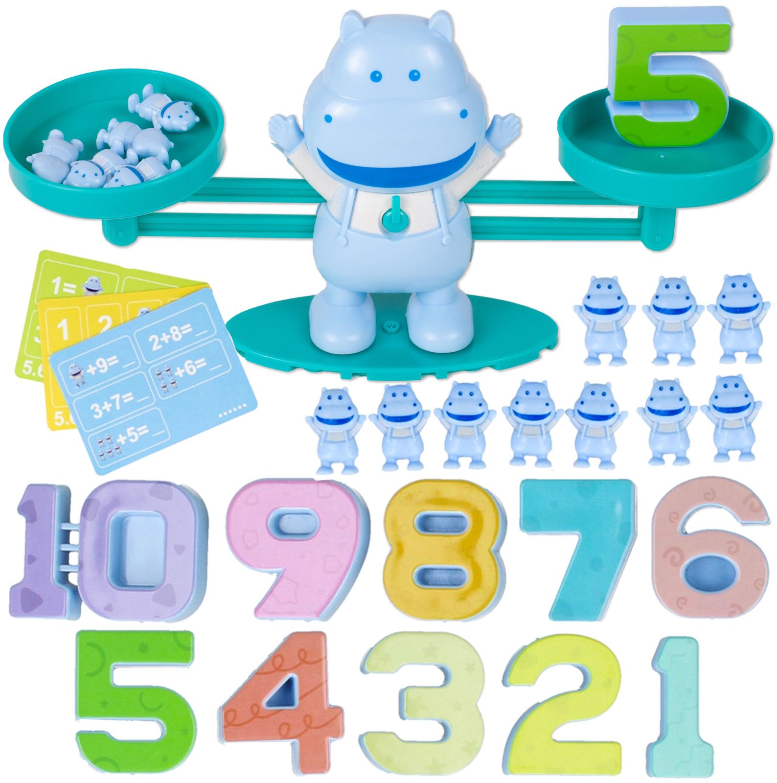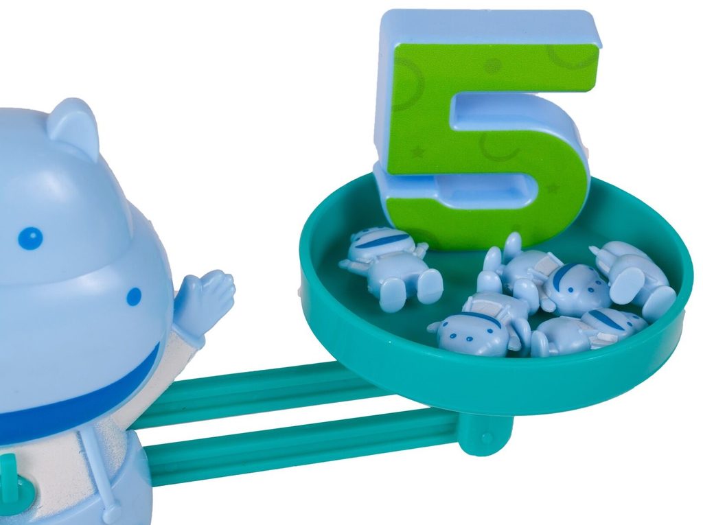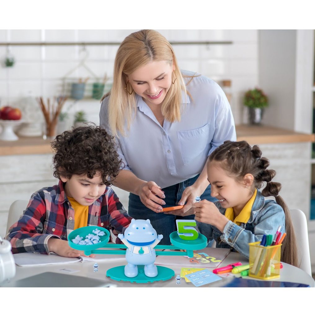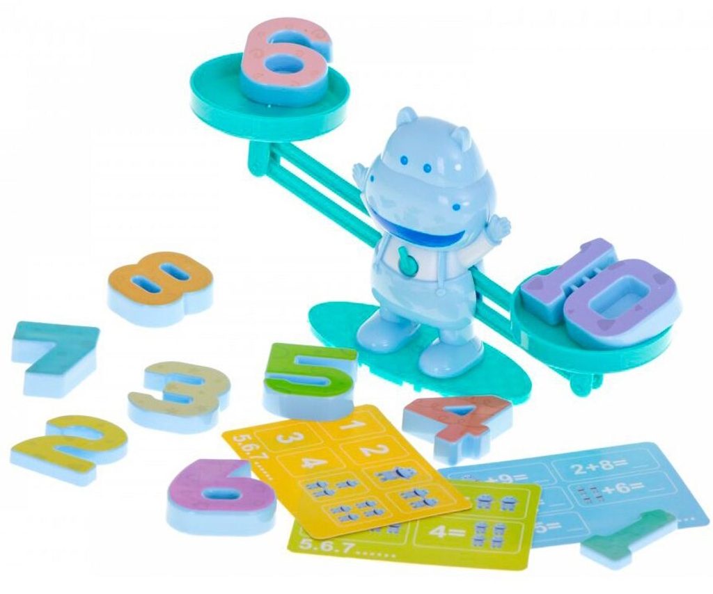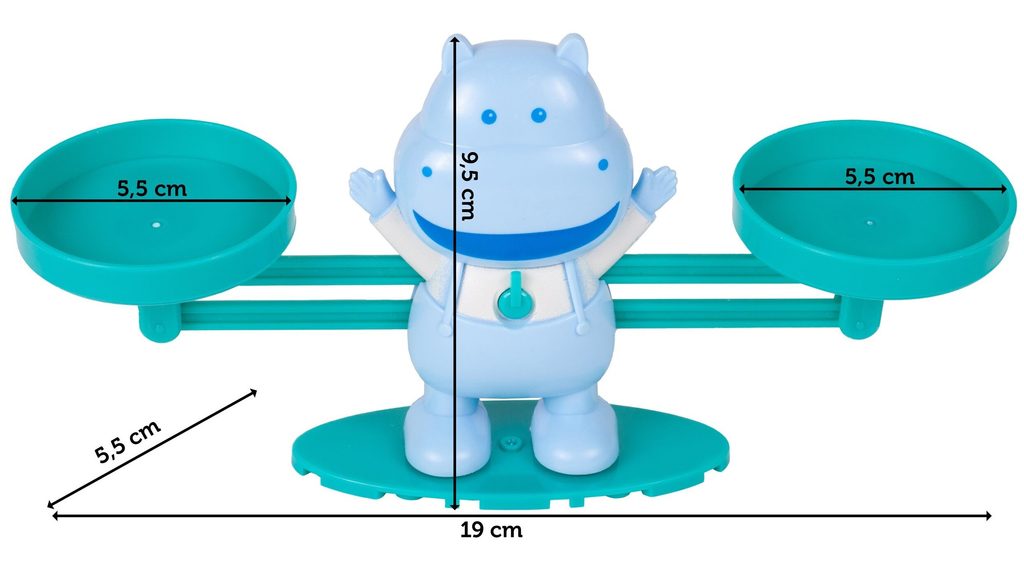 Detská náučná váha pre deti Balance Hipcio je ideálnou hračkou pre rozvoj logického myslenia, náuky matematiky a fyziky. Sada obsahuje niekoľko súčastí. Okrem váhy s hrochom tu dieťa nájde závažie v tvare malých hrošíkov, číslice a kartičky s úlohami. Pomocou tejto hračky deti zistia ako funguje váha, môžu porovnávať hmotnosti rôznych predmetov a tiež sčítať a odčítať. Hračka je určená pre deti od 3 rokov veku.