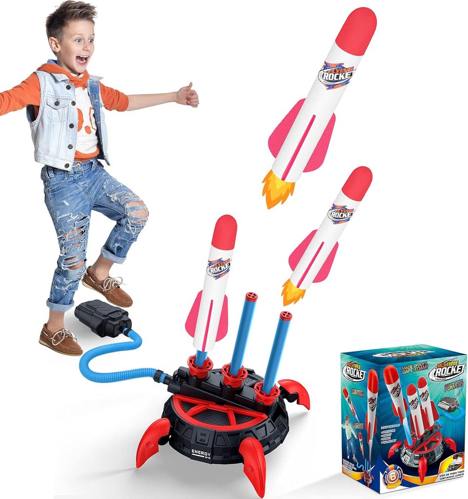 Predstavujeme raketomet pre deti, ktorý ponúka ľahké penové rakety, ktoré sa ľahko vznášajú do vzduchu, poháňané jednoducho ovládateľným odpaľovacím zariadením. Užite si hodiny zábavy bez nutnosti batérií či napájania – stačí uchopiť odpaľovacie zariadenie, vyraziť do záhrady a začať dobrodružstvo! Nabite až 3 rakety naraz a odpaľujte ich postupne bez toho, aby ste museli neustále dopĺňať muníciu, čo je oveľa vzrušujúce ako s jednou raketou. Tieto 18 cm dlhé penové rakety sú vyrobené z ľahkých a bezpečných materiálov, čím sa stávajú ideálnym spoločníkom na hranie v rôznych podmienkach a zároveň podporujú fyzický vývoj dieťaťa.