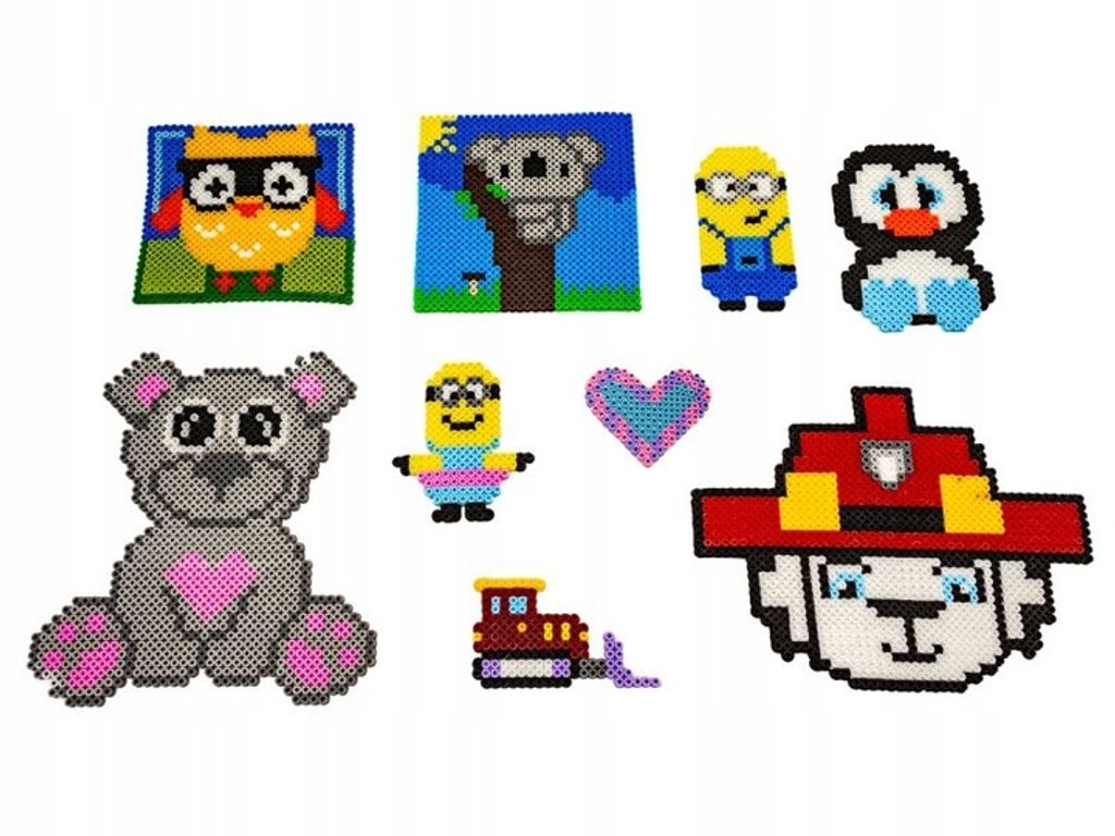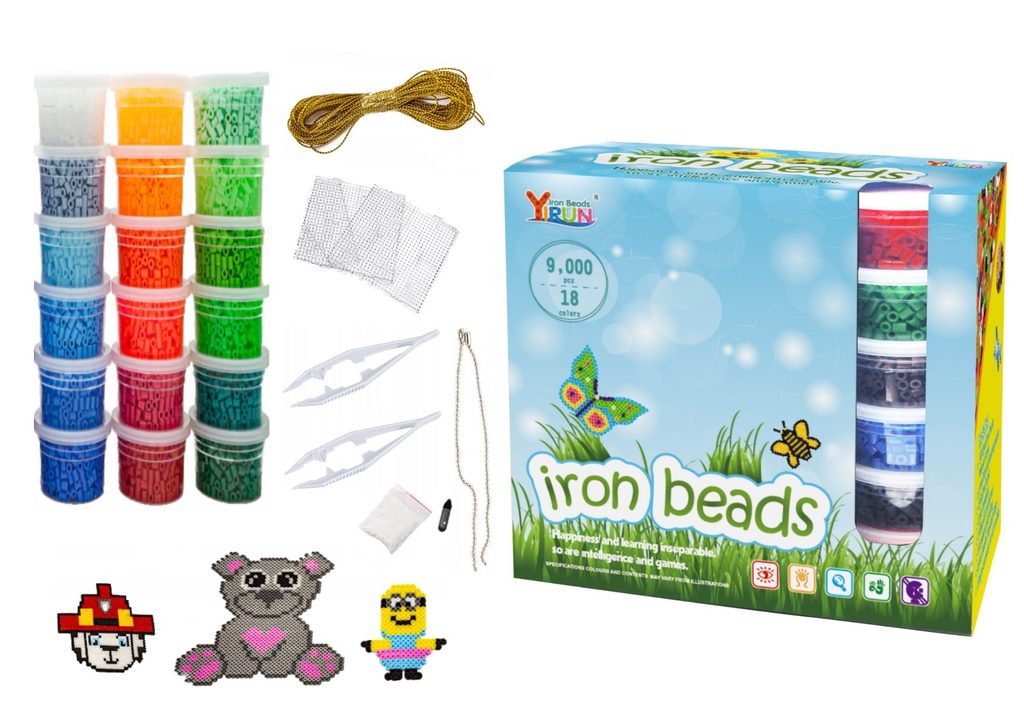 Súprava farebných  korálikov na žehlenie učí detí predstavivosť, podporuje kreativitu a manuálne zručnosti. Súprava obsahuje celkom 9000 ks korálikov v rôznych  farbách. Je možné z nich vytvárať rôzne vzory, tvary, náramky, 3D postavičky a náhrdelníky, ktoré sa potom nažehlia cez priložený žehliaci papier. Všetko je uložené v praktickom plastovom vedierku s horným úchytom. Hračka je určená pre deti od 6 rokov .