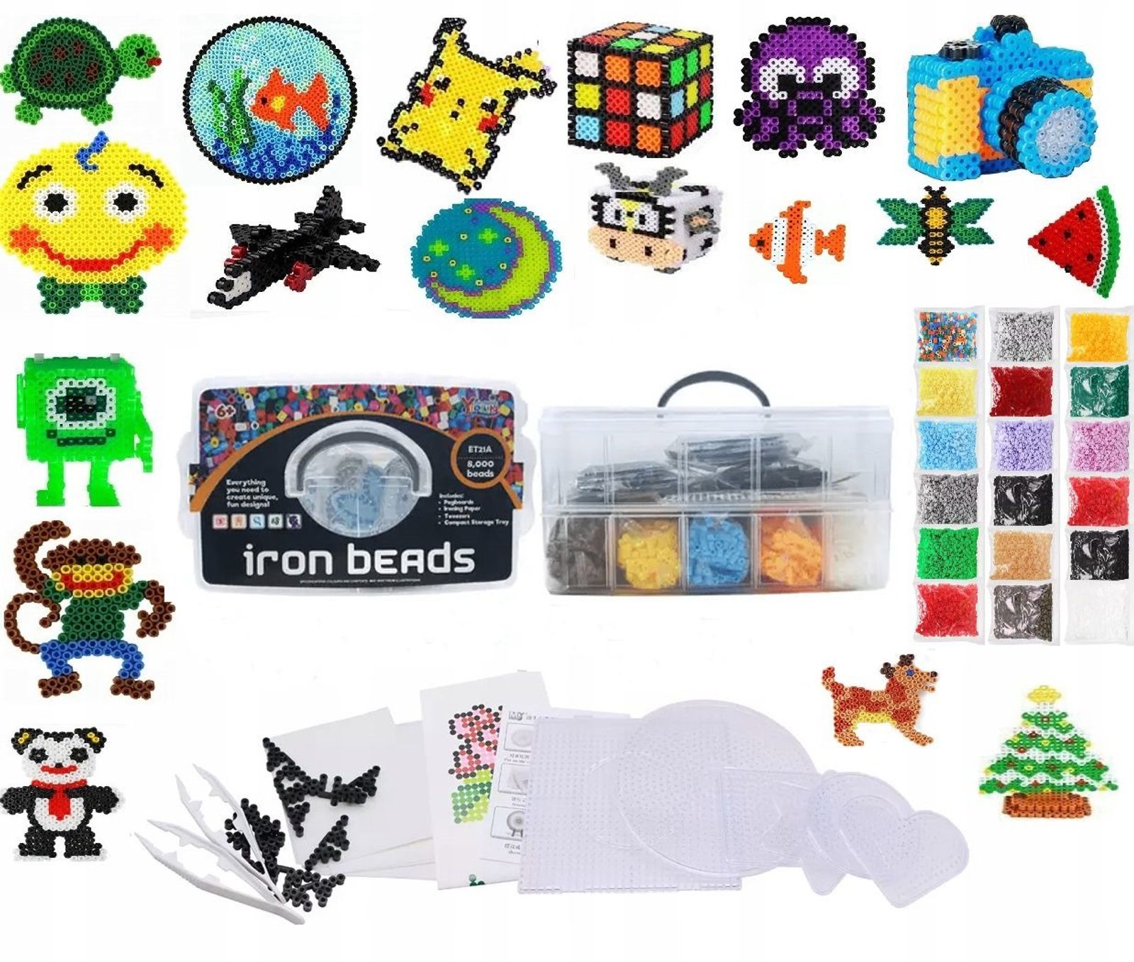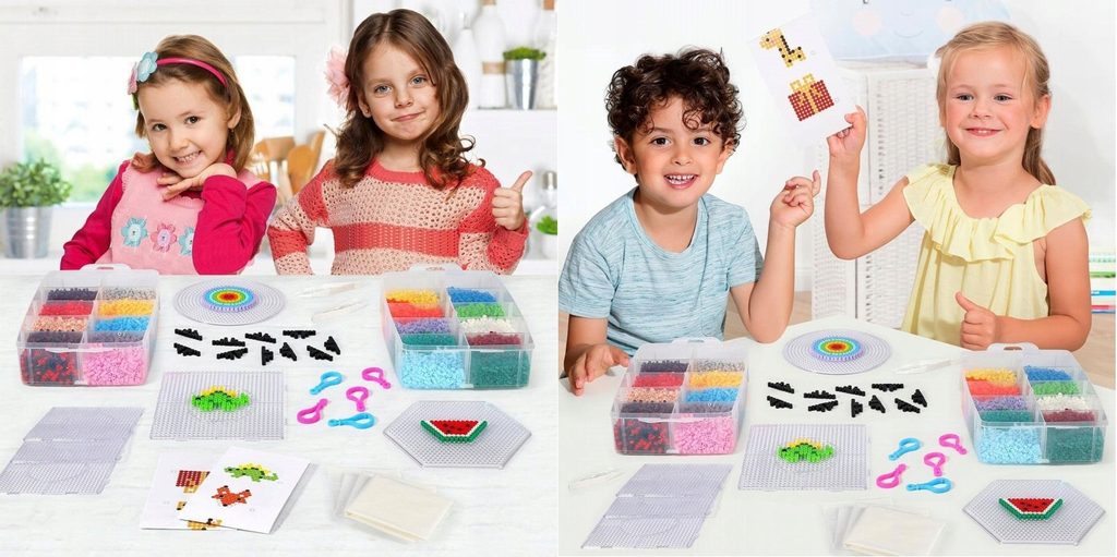 Súprava farebných korálikov na žehlenie učí detí predstavivosť, podporuje kreativitu a manuálne zručnosti. Súprava obsahuje celkom 8000 ks korálikov v rôznych farbách. Je možné z nich vytvárať rôzne vzory, tvary, náramky, 3D postavičky a náhrdelníky, ktoré sa potom nažehlia cez priložený žehliaci papier. Všetko je uložené v praktickom plastovom vedierku s horným úchytom. Hračka je určená pre deti od 6 rokov .