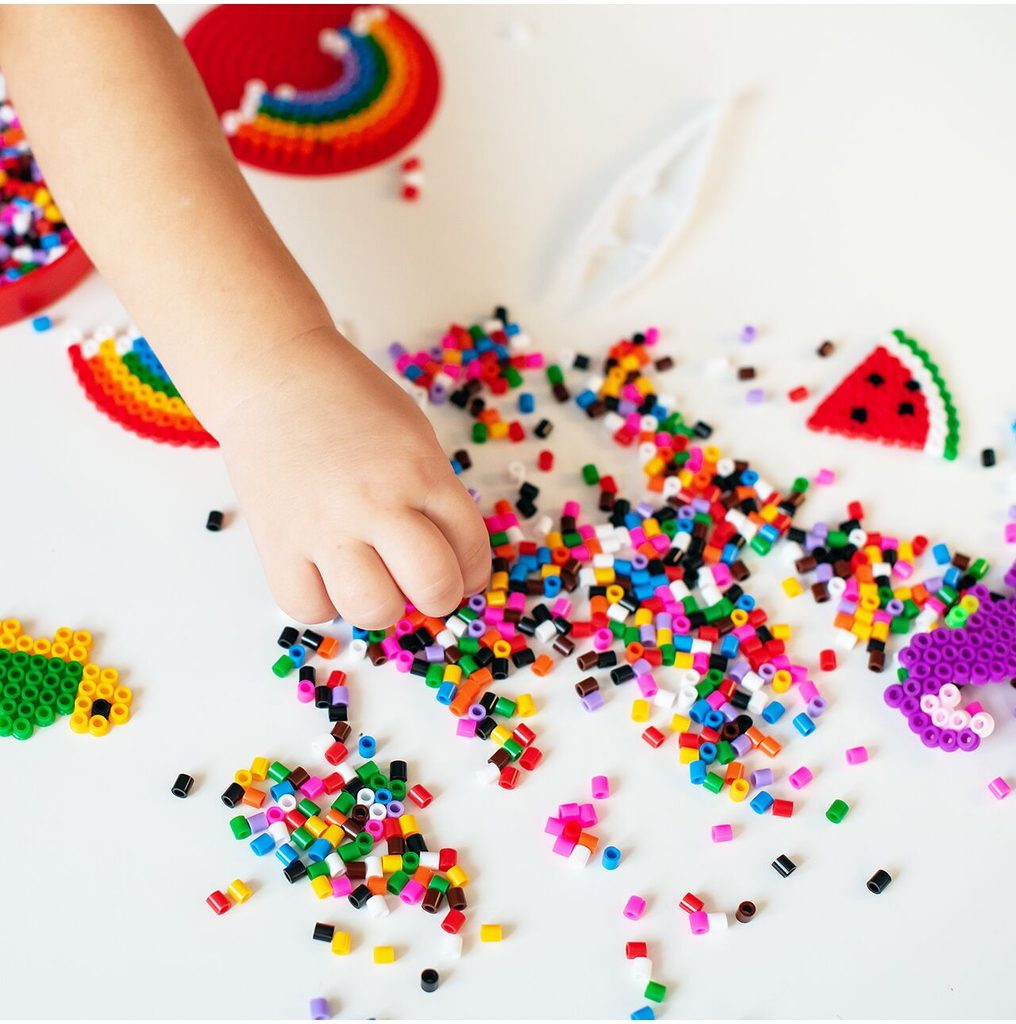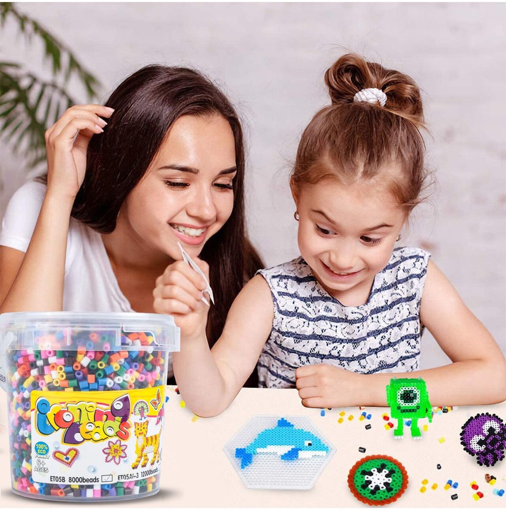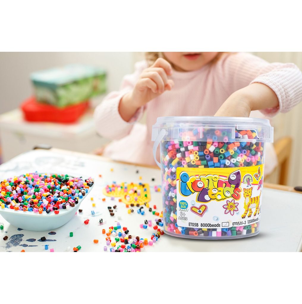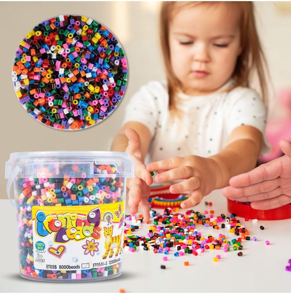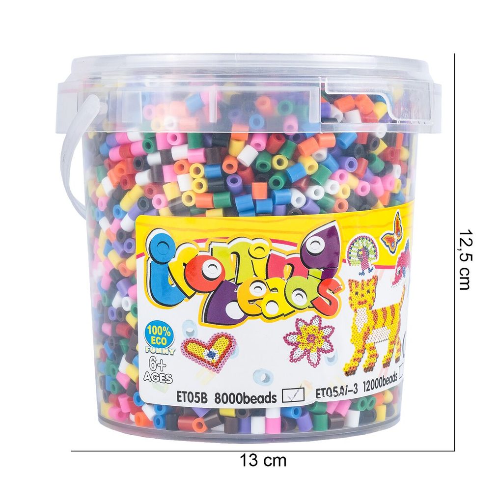 Súprava náhradných farebných korálikov na žehlenie učí detí predstavivosť, podporuje kreativitu a manuálne zručnosti. Súprava obsahuje celkom 8000 ks korálikov v 10 farbách s priemerom 0,5 cm. Je možné z nich vytvárať rôzne vzory, tvary, náramky a náhrdelníky, ktoré sa potom zažehlia cez žehliaci papier. Všetko je uložené v praktickom plastovom vedierku s horným úchytom. Hračka je určená pre deti od 6 rokov.